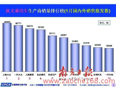 乘用车生产商销量排行榜 (1月国内外销量批发数)
