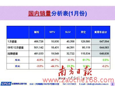 比亚迪汽车:1月销量为21915辆,同比增长79.8%。比亚迪F3当月销售14938辆。比亚迪2009年销售目标是40万辆。