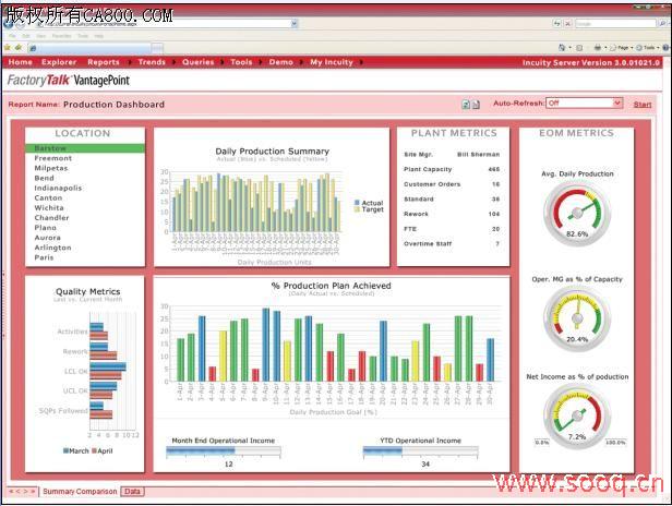 FactoryTalk VantagePoint应用软件将提供多个版本,从而使制造商们能够针对他们的需求选择出最适合的功能设置版本。该软件的第一个版本,FactoryTalk VantagePoint,以一种易于配置和安装的解决方案将由罗克韦尔自动化集成架构与其它第三方生产系统所产生的数据相结合。它其中包含了标准化、预先配置好的报告,用于管理设备、仪器、报警和控制环路以及批处理或者生产运行和轮换报告。该应用软件中还包括了趋势和仪表板功能,从而支持强大的分析功能,并能够使用微软的Excel来进行更方便的报告生成。