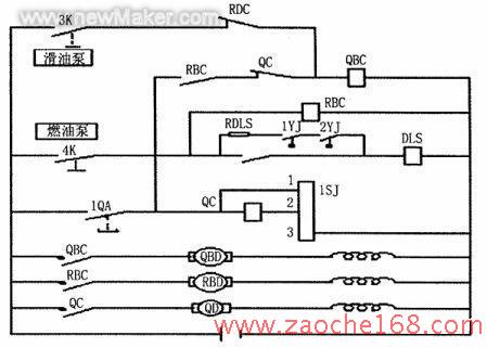 从图中可以看出,柴油机起动必须具备三个条件:一是燃油的供给;二是运动部件润滑;三是蓄电池要有足够的能量驱动起动电机,使柴油机达到一定的起动转速。 在整个起动过程中,对起动电机和喷油泵供油齿条的控制都是通过起动接触器QC 来实现的。这种控制方法存在如下缺陷: