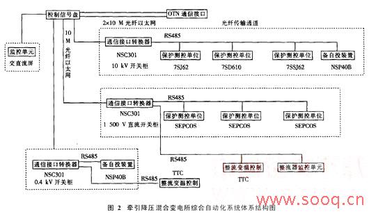 牵引降压混合变电所综合自动化系统,既RTU,采用分层分布式模块化结构,系统分为3个部分:站级管理层,网络通信层,间隔层。