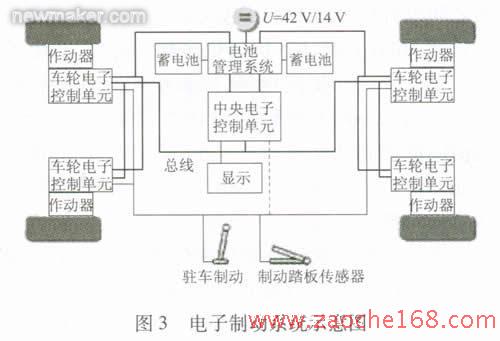 随着技术的进步,上述各种问题会逐步得到解决,电子制动控制系统会真正代替传统的以液压为主的制动控制系统,其示意图见图3。
