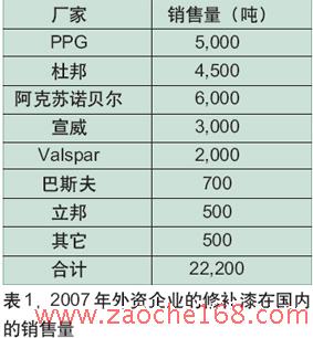 2007年,该公司的修补漆销售量为6000吨,约占中国修补漆20%左右的市场份额。