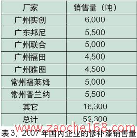 2007年,该公司的汽车修补漆销售量逾5000吨。