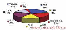 图1,2007年外资企业的修补漆在国内的市场份额