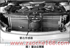 雷达传感器一般安装在散热器上,具体位置如图2。