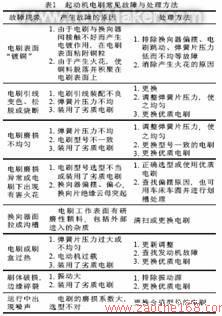 表1起动机电刷常见故障与处理方法