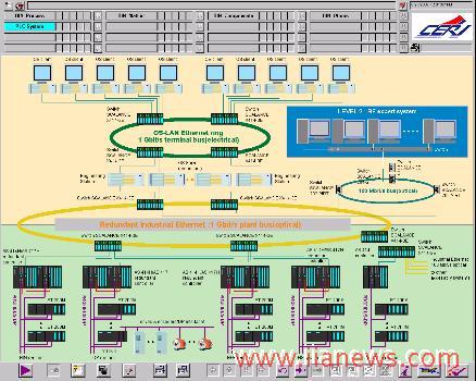 控制器部分,对于矿槽系统、炉顶系统、高炉本体系统、热风炉系统等高炉主体部分选用AS417-4-2H组件包(双电源模块、双CPU模块,双以太网通讯模块、双PROFIBUS通讯网络),其它公辅系统选用AS414-3组件包。ET200M I/O部分选用带有热插拔功能的有源背板和具有高性能的接口模块IM153-2HF,对于热备系统则选用双电源模块、双总线接口模块。工程师站、操作员站(包括SERVER、CLIENT、单站)均选用预装有PCS 7软件的SIEMENS IL43系列工控机。对于热备系统的PROFIBUS网络,选用Y-LINK将具有PROFIBUS接口的传动装置和编码器接入并实现切换的功能。系统还留有于二级系统的网络接口,通过SCALANCE X200系列交换机连接至主环网并通过SCALANCE S硬件防火墙隔离。