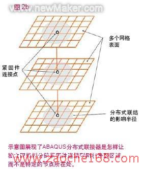 紧固件之所以能独立于网格,是因为分布式联接器能“跨越”FE网格的区域界限进行联接。(参见图2a及2b)。按照惯例,每个紧固件都用一个特定的节点位置加以区分,因此,只要该模型被重新划分网格,所有的点焊位置都将被重新确定。独立网格划分的紧固件有助于提高建模效率,为许多行业的工程师们节约了大量时间。比如说,在航空航天工业领域中,独立网格划分的紧固件还被用于模拟铆钉。