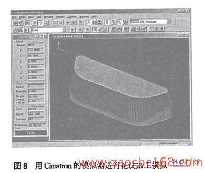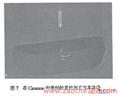 利用Cimatron软件的加工模拟功能,生成的侧花纹刀具加工路径如图7所示,加工模拟出来的侧花纹效果如图8所示。