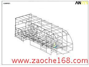 考虑到,影响车身骨架性能的主要因素是其刚度,结构优化设计只需从整体分析整车性能;其次,使用梁元进行结构优化的效率明显高于壳元的,再一点,应用ANSYS 建立整车骨架的参数化面模型是非常困难的。故,选用ANSYS 的3-节点梁元BEAM188 建立车身骨架结构优化模型(图3),共4715 个单元和9165 个节点。