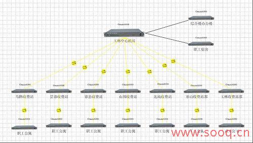 办公网络采用24台Omate6000以太网交换机,先由网通提供光纤专线连接路由器,路由器再通过SDH通信系统连接Omate6000以太网交换机到各个办公大楼及下边各个收费站办公室、职工公寓。
