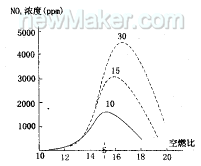 由于NOx是高温燃烧时的生成物,当发动机的转速和负荷提高时,使气缸的燃烧温度升高,NOx生成量随之增大,CO和HC的生成量稍有增加,但影响较小。