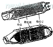(3)三元催化净化装置。三元催化净化器的催化剂为铂、铑、钯和钌等贵金属,其载体的形状分为粒状和片状(见图4)。根据生产工艺的方便性,后者的应用较广泛。