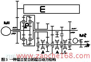 既转速和转矩都要满足一定关系的复合结构,如图3所示的一种“变速也变矩”的混合复合结构。
