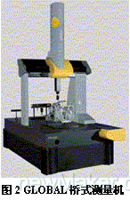 如Brown & Sharpe集团的Global测量机(如图2)。其特点包括:独特的TRICISIONTM式(精密三角梁)横梁设计,提供良好的刚性质量比,轻合金桥架较传统设计刚性提高25%,X向导轨重心降低50%从而保证了平稳、精确的运动;移动桥上轴承跨距更宽,降低了由于桥架自转而引起的误差,从而保证了整机空间精度更高,降低了重复性误差,提高了加速和减速性能,使测量效率更高;获得专利的、经过精密加工的整体燕尾型导轨,提高了机器的精度和重复性。非接触式光栅尺避免了摩擦,装配时一端固定,另一端可随温度变化而调整,光栅热膨胀系数获得PTB认证。