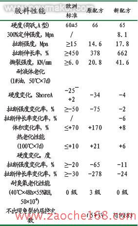 在现代机车车辆方面,空气弹簧已广泛用于各型铁路提速、准高速客车、高速客车,以及地铁车辆、轻轨车辆、磁悬浮列车和其他工程减振领域。空气弹簧的特点主要表现为:①能提供与运行速度相匹配的当量静挠度,同时,空气弹簧配有高度控制系统,使车体可在任何载荷下与轨面保持一定的高度,从而有利于增加悬挂装置的静挠度,改善转向架的动力品质和提高车辆的运行平衡性。②可通过改变内压得到不同的承载能力,同时,利用附加空气室,可以根据需要选择所需的低刚度,这使得空气弹簧可以适合多种结构的要求。③自振频率很低,且其自振频率在任何载荷下均可保持不变,这有利于悬挂装置的性能具有一定的稳定性。④具有高频吸振和良好的隔音效果,同时,利用空气阻尼作用,还可起到衰减振动的作用。与国外相比,在产品使用寿命上存在一定的差距,国外空气弹簧一般使用寿命为8~16年,而国内产品一般使用寿命仅有3~5年。畦田、利夫等人研究表明[34],作为空气弹簧气囊的老化因素,是以交变应力为基础,再以热、紫外线等的氧化老化因素相复合,并指出今后应将重点放在耐疲劳性的材料设计上。目前时代新材研制的空气弹簧胶料已经完全超过了欧洲标准(见表3),使用寿命可达10年以上。