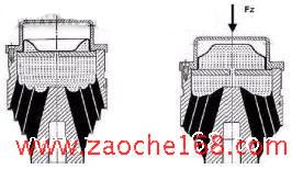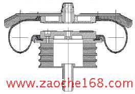 液体复合橡胶弹簧减振器(简称液体复合弹簧),也称液力减振器,是以橡胶弹性体密封流体(通常是不冻液,如乙二醇和丙二醇的混合液),利用流体的液压支撑和橡胶共同起缓冲作用的,也属非线性减振器。