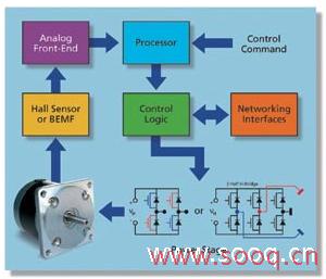 与此同时,运动控制应用的复杂程度也越来越高,已从简单的开/关型控制向在高度集成环境中具备精确控制的可变速应用发展。无论是交流、直流、有刷和无刷电机的各种控制电路主要由三部分构成:人机界面、微控制器(MCU) 和控制逻辑。对于闭环运动控制,传感器接口是外加的一个元件(图1)。将运动控制逻辑纳入数字领域可以实现分布式环境控制。运动控制电子和分布网络的配合可在车间实现多种新功能,包括远程管理;适应不断变化的协议;性能监视;以及按期进行维护。