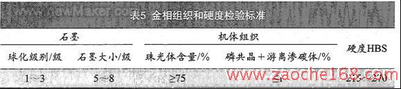 每球化包浇注出的曲轴铸件要进行金相组织和硬度的检验,其检验要求见表5。