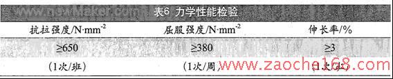 每班检验1次,每次2-3个试棒.其检验技术要求见表6。