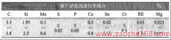 目前,采用低镁球化剂、铁屑覆盖,其工艺简单,球化反应稳定,球化效果好且成本低。