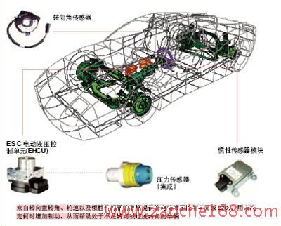 ESC、RSC、ESP等系统都是底盘中起到稳定控制功能的不同系统名称。这些底盘控制系统使用不同的惯性传感的组合,来增强汽车的稳定性。按美国政府和欧盟的统一规定,本文统一称为ESC系统。