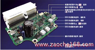 图3所示的安全气囊控制模块包括了用于碰撞传感/安全气囊控制和惯性传感/电子稳定性控制的传感器。