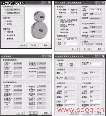 齿轮传动是机械传动中最主要的一类,型式很多,应用广泛,齿轮设计在机械设计中占据着相当重要的地位,但它的设计步骤多、涉及参数多,需查询的图表总数有二十多个,给设计工作者带来很多的不便,降低了设计效率。随着计算机辅助设计与制造(CAD/CAM)技术的发展,在产品开发的过程中,有限元分析、装配设计、运动仿真、数控加工等都必须以三维模型为基础。在进行齿轮机构设计时,经常需要利用CAD技术设计并建立齿轮的三维实体模型,从而利用CAD/CAM软件进行装配、检测和分析。目前国内外常用的CAD/CAM软件,如美国EDS公司的UG和 Solid Edge, PTC (Parametric Technology Corporation)公司的Pro/Engineer, CNC Software Inc.的MasterCAM等三维CAD/CAM软件都无法直接进行齿轮的设计[1>[2>。为此我们提出了将齿轮的设计计算和三维实体模型设计融为一体的设计方法,并设计了基于三维CAD软件Solid Edge[2>的齿轮三维设计软件系统。该软件系统不仅可以方便地设计并生成齿轮的三维实体模型,还可用于齿轮装配设计、运动仿真及计算机辅助教学中。 1. 齿轮三维设计软件系统的构成 1.1软件系统的设计思想 我们在构建齿轮三维设计软件系统时,主要考虑了以下几个方面的问题:①在三维环境中进行齿轮设计,主要有两种情况:一是根据使用要求,逐步进行设计计算,设计出齿轮的参数后再进行齿轮的三维设计;二是已经知道齿轮的基本参数,如齿数、模数等,利用三维CAD软件直接构建齿轮的三维模型。这两种情况在构建齿轮三维设计软件系统时,必须要都能满足。②在构建齿轮三维设计软件系统时,必须仔细分析齿轮的设计过程,提取其合理的设计流程。只有建立在合理的设计流程基础上的齿轮设计系统,才可能较好地满足用户的要求,只注重理论研究而忽视工程实践的做法是不可取的。为此我们设计的齿轮软件系统是按齿轮的设计流程分模块设计的。③三维CAD软件Solid Edge虽然具有较强的参数化特征造型功能,但不能生成需要经过精确计算的齿轮廓线。为此我们将复杂的齿轮设计计算交给Visual Basic程序完成,将齿轮的结构设计交给Solid Edge来完成,通过Solid Edge的二次开发接口用Visual Basic程序将两者有机地结合在一起,形成一个完整的齿轮三维设计系统。 1.2齿轮的设计计算 该部分主要根据文献[3>的齿轮设计步骤来进行设计。设计中,可以根据齿轮的工作要求、工作环境来选择齿轮的类型、材料、精度等级等,按照保证齿面接触强度和齿根弯曲强度两准则[3>进行计算,设计出齿轮的基本参数如模数m、齿数z等。其具体设计计算方法可参考文献[3>,本文不再赘述。本软件系统采用了向导型设计界面,使用方便、清晰。如图1为几个设计界面。
