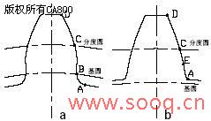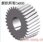 图1齿轮设计界面 在进行齿轮设计计算时,需查询的图表总数有二十多个,因此在软件设计时需要解决的关键问题是这些图表的查询。为此我们采用了以下几种不同的方法来解决: (1) 直接创建数据库 该方法主要是针对二维表格,如常用齿轮材料及其机械特性表,齿间载荷分配系数KHα 、KFα表,齿形系数YFα及应力校正系数YSα表,圆柱齿轮的齿宽系数φd表,各类机器所用齿轮传动的精度等级范围表等。我们是通过Acess2000来建立相应的数据库,对于不能直接从数据库中获取数据的情况,我们还在程序中采用了插值法来实现数据的获取。 (2) 创建数据库与程序相结合 该方法主要针对多维表格,如:使用系数K A表,弹性影响系数Z E表等。对于这类表格采用创建数据库与分支程序相结合的方式来获取相应的数据,可简化数据库结构。 (3) 图表的数学处理 对于接触强度计算用的齿向载荷分布系数KHβ表、弯曲强度计算用的齿向载荷分布系数KFβ图、弯曲疲劳寿命系数KFN图、接触疲劳寿命系数KHN图、标准圆柱齿轮传动的端面重合度εα图、螺旋角影响系数Yβ 图、区域系数ZH 、动载系数K V 图、弯曲疲劳强度极限σFE图、齿轮的接触疲劳强度极限σH lim等图表,通过查询有关资料获得相应公式,或建立相应的数学方程来简化程序设计。 1.3 基于Solid Edge的齿轮廓线设计 轮齿的形成在实际加工中可以有多种方法,有成形法、范成法等等,不管是什么方法,它们都是在毛坯上去除齿槽,最终形成轮齿。齿轮三维造型方法与实际切削加工有着相似的地方,也是通过除料(Cutout)的方法把齿槽部分去除。该部分主要是在Solid Edge的草图环境(Sketch)中创建齿轮的轮齿廓线,为生成齿轮的三维模型做准备。 创建齿轮齿槽廓线主要有三种方法:①模拟切削加工,形成精确齿廓。②根据轮齿廓线的解析法方程,用直线段逼近。③用轮齿廓线上少量的点,通过B样条曲线拟合。方法一和方法二所生成的轮齿廓线精确,但在三维环境中采用,则所形成的齿轮包含的特征元素数量庞大,占用的磁盘存储空间庞大,生成的时间长,无法用于齿轮传动系统的三维装配和二维工程图中。为此,我们采用方法三,并经过反复测试,提出了“四点法”近似构成轮齿廓线,且效果较好。 所谓“四点法”,就是在轮齿渐开线及过渡线上取四点,通过Solid Edge提供的B 样曲线接口函数BSplineCurve2d来近似生成轮齿廓线。在不同的条件下,这四点有所不同。当基圆大于齿根圆(齿数z≤41)时,轮齿廓线在理论上由一条渐开线和一条过渡线组成,此时,我们所指的四点是取齿根圆上A点、基圆上B点、分度圆上C点和齿顶圆上D点,如图2 a所示。当基圆小于齿根圆(齿数z>41)时,轮齿廓线图2“四点法” 基圆分度圆分度圆基圆ba在理论上是一条渐开线,但实际上,由于刀具齿顶圆弧的存在,齿根部分仍然存在过度曲线。由于该过度曲线部分较小,因此,此时我们所指的四点是取齿根圆上A点、分度圆上C点、齿顶圆上D点及齿根圆与分度圆中间的一点E,如图2 b所示。