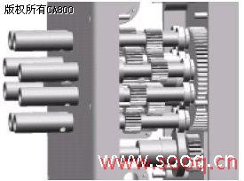 图5某组合机床主轴箱齿轮传动系统 3. 结束语 本文以三维CAD软件Solid Edge为软件平台,介绍了参数化的齿轮三维设计方法,并将齿轮的设计计算和三维实体模型设计融为一体,大大地提高了齿轮三维设计的效率。我们设计的基于三维CAD软件Solid Edge的齿轮设计软件系统,其运行可靠、界面清晰,使用方便,可广泛用于齿轮传动系统的三维设计中,例如图5为采用该系统设计的某组合机床主轴箱传动系统。 |