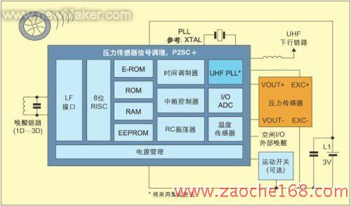 来自硅片传感器的信号必须经过放大和数字化,而整个器件还需要进行校准和初始化。飞利浦公司的传感器信号处理芯片P2SC从传感器桥(sensor bridge)采集信号后,对信号进行数字化处理,然后直接在芯片上测量温度并执行所需的全部校准和初始化操作。P2SC带有基于STARC的精简指令集计算机(RISC)第二代微控制器内核,该内核通过了RKE应用的现场检验并专用于TPMS。P2SC的功耗也经过优化后降至最低,而且作为一项特有的性能,P2SC还能通过车轮识别特性解决自转问题。