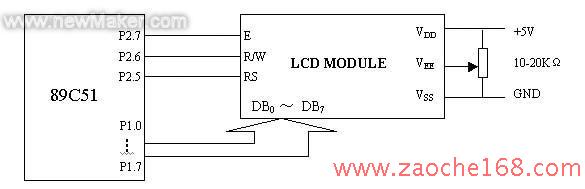 44780显示模块有8条数据线,3条控制线。可与微处理器或微控制器相连,通过送入数据和指令,就可使模块正常工作,44780显示模块和89C51单片机连接电路如图3所示。