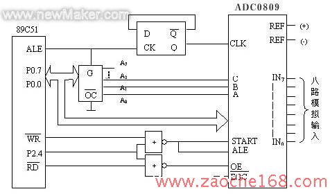 本系统模/数转换模块ADC0809送出的数字信号经锁存器锁存后传送给单片机,锁存器对干扰非常敏感,当锁存线上出现干扰时,会盲目锁存当前数据,为此可将锁存器与单片机设计在同一电路板上,使传输线上传送的是已经锁存好的控制信号。设计软件时,尽可能快地重复输出同一个信号,以减小干扰信号影响的概率。