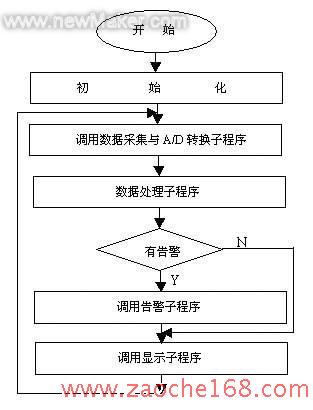 该系统软件主要由主程序、中断子程序、数据采集与A/D转换子程序、显示子程序、告警子程序等六大模块组成,因为C语言编写的软件易于实现模块化,生成的机器代码质量高、可读性强、移植好,所以本系统的软件采用C语言编写,在Keil Vision3 Demo版本的集成开发环境下进行编译连接。