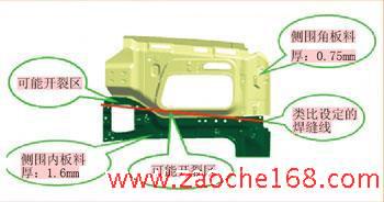 (3)焊缝应避免穿越产生拉延效果很大的区域,特别要防止焊缝平行穿越成形R区域。