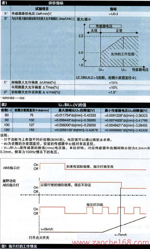 对ABS传感器进行功能试验,然后进行评价,评价的项目如下: