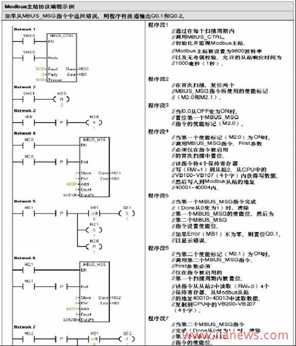 STEP7-Micro/WIN编程软件指令库包含有专门为Modbus通讯设计的预组态的子程序和中断服务程序,使得与Modbus主站和从站设备进行通讯简单易行。