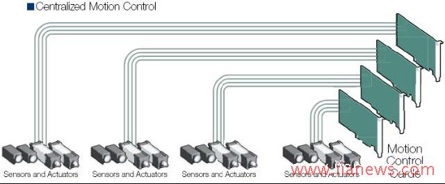在2000年代之前,分布式运动控制并不普及。相反的,自动化设计师必须全盘接受集中式控制系统,由主机(如PLC)管理马达的运动,此种控制方式缺点是需要大量布线,一部伺服马达可能需要多条布线,才能从马达所在位置将编码器回授、感应器输出及其它讯号回传至中央控制器。根据已公布的资料估算,每个轴最多可能需要25条布线。建置如此复杂的系统相当困难,常出现线缆束过粗不易维修或无法提供可靠服务的情况。