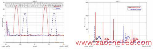 图7 相应的气门弹簧受力曲线 图8 相应的凸轮与挺柱间接触力曲线