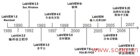 LabVIEW从最初就被设计为一种强大的高层架构型编程语言,自1986年1.0版诞生以来,纵观其20多年的发展(图1),可以发现,每次LabVIEW的主要升级版本的发布都包含了很多全新的特性。