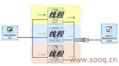 相比之下,LabVIEW由于其本身就是一种并行的编程结构,因此非常适合于创建并行的多线程应用;而在LabVIEW 5时就开始支持多线程,编译器可以自动识别线程并创建线程到不同的任务和循环上,再由操作系统分配到不同的核上运行(图6)。
