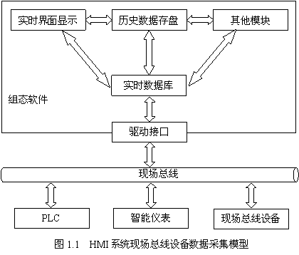 通过组态软件驱动接口,组态软件采集现场总线设备的数据,将现场数据转给组态软件实时数据库,并通过标准控件显示数据信息,通过标准存盘接口完成历史存储,以及其他功能,比如报警、逻辑、用户管理等,最后,通过实时数据库和组态驱动接口,还可以实现总线系统中PLC、智能仪表和其他总线设备的控制。