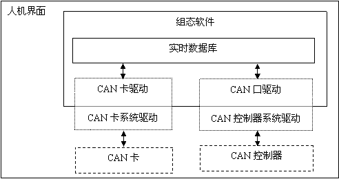 组态软件的CAN驱动程序,如图4.1所示,是人机界面和组态软件的接口,其功能和特点是: