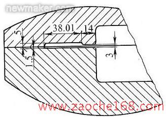 毛边槽桥部b=14mm,毛边槽型槽宽b1=38mm,毛边槽断面积Sk=278mm²,毛边槽型槽高h1=5mm,入口处半径R=2mm。毛边槽形状及尺寸见图2。