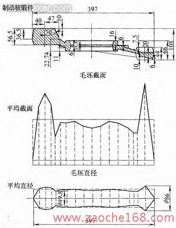 制动板锻件的截面图、直径图如图3所示。