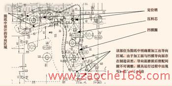 如图3所示,该部位为图纸中明确标出需加工出导向的区域。但由于压料芯为复杂型面故采用铸件成形后再对导向面进行机加工,造成加工面与凹模导向面滑配后存在间隙误差,在模具正常运行过程中出现了压料芯左/右摆动。