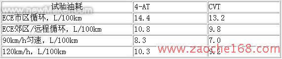 CVT可以在相当宽的范围内实现无级变速,从而获得传动系与发动机工况的最佳匹配,提高整车的燃油经济性。德国的大众公司在自已的Golf VR6轿车上分别安装了4-AT和CVT进行ECE市区循环和ECE郊区循环测试,证明CVT能够有效节约燃油(如表1)