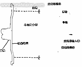 液力变矩器虽能传递和增大发动机扭矩,但变扭比不大,变速范围不宽,远不能满足汽车使用工况的需要,为此在液力变矩器后面又装一个辅助变速装置-齿轮变速系统,多数是行星齿轮变速系统,也可以是平行轴式(固定轴线式)齿轮变速系统,用以进一步增大扭矩,扩大其变速范围,提高汽车的适应能力。行星齿轮变速系统是一种常啮合传动,其传动比变换可通过分离与结合离合器或制动器而方便地实现,特别有利于动力换挡或自动换挡。电子控制自动变速器的行星齿轮变速系统一般由双排行星轮或三排行星轮组成,并广泛采用三自由度变速器。图2-3为双排行星轮变速器的原理图,该变速器在同一轴上有前后两个单排行星轮,两排行星轮由一个公共的空心太阳轮相连,该太阳轮与两行星排的行星轮啮合,这种双排行星轮变速器具有前进挡和一个倒挡,常装在前置发动机后驱动的(FR)汽车上。