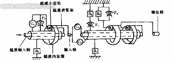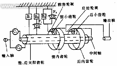 C1-前离合器;C2-后离合器;B1、B2、B3-制动器;F1、F2-单向离合器